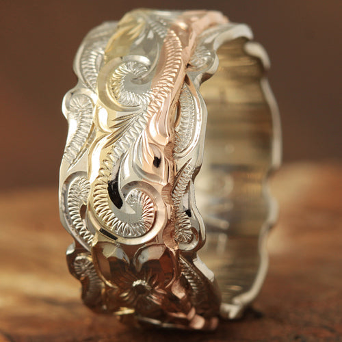 14K Tri-Color Gold Custom-Made Plumeria Scroll Cut Out Edge Ring (Thickness 2.0mm)