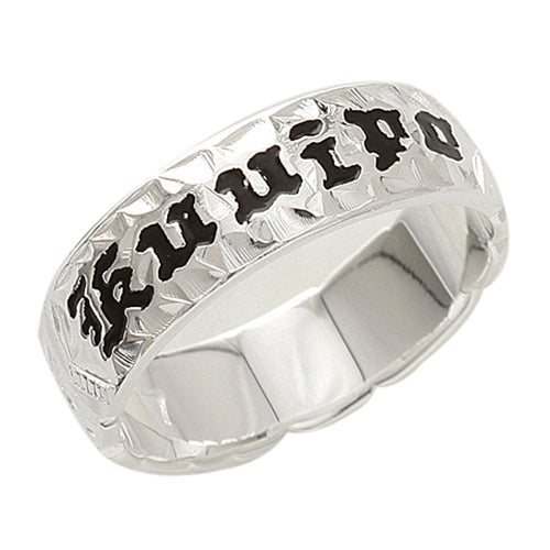 This beautiful Hawaiian Heirloom ring is made with 14 karat gold with black enamel letter custom name.