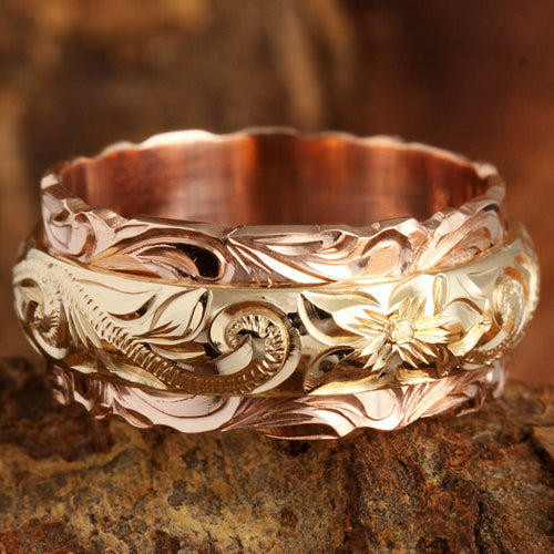 14K YG/PG Custom-Made Plumeria Scroll Cut Out Edge Double Ring