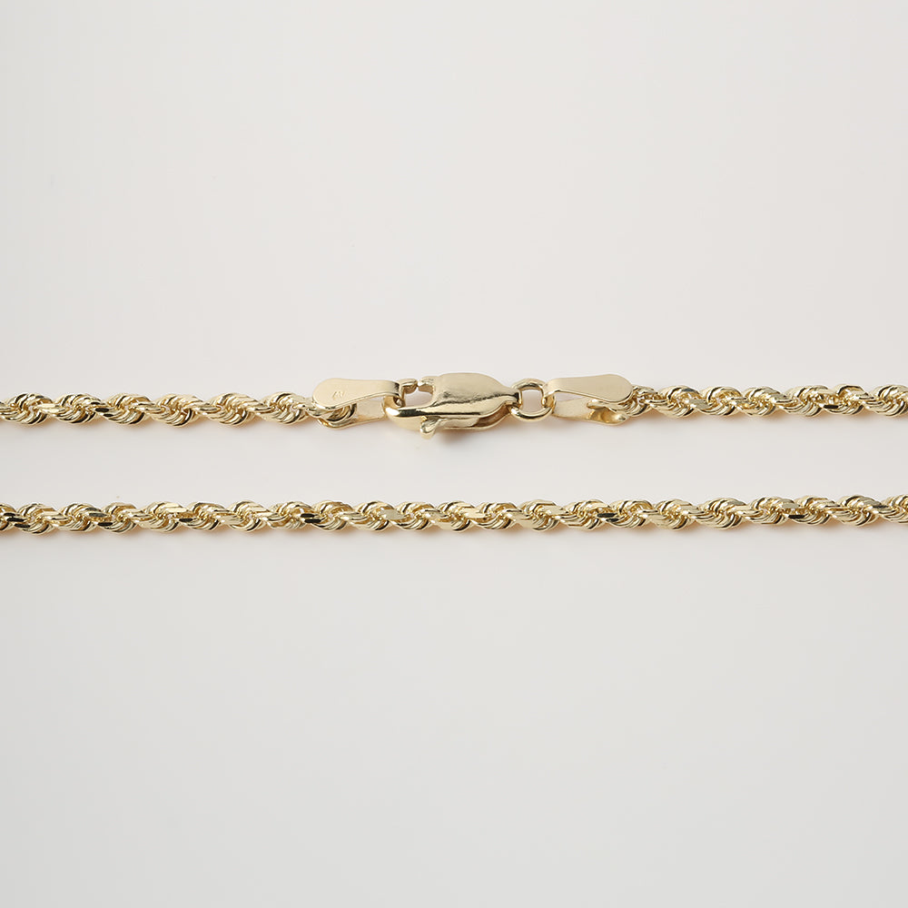 14K Solid Yellow Gold Rope Chain 1.3mm