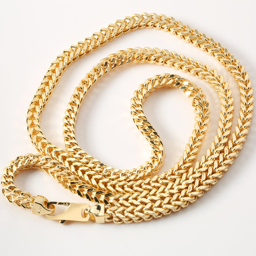 Solid 14K Yellow Gold Franco Chain Mens Chain 3.8*3.5mm 22 Inches