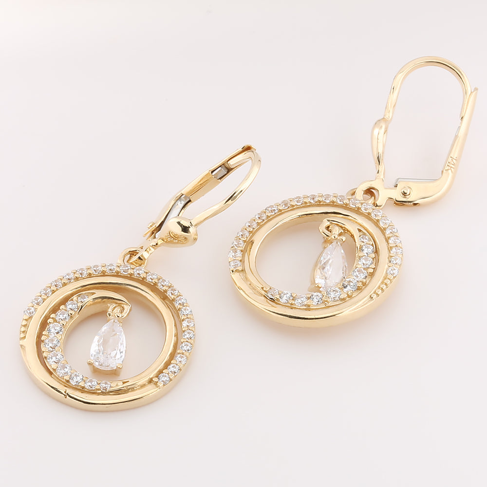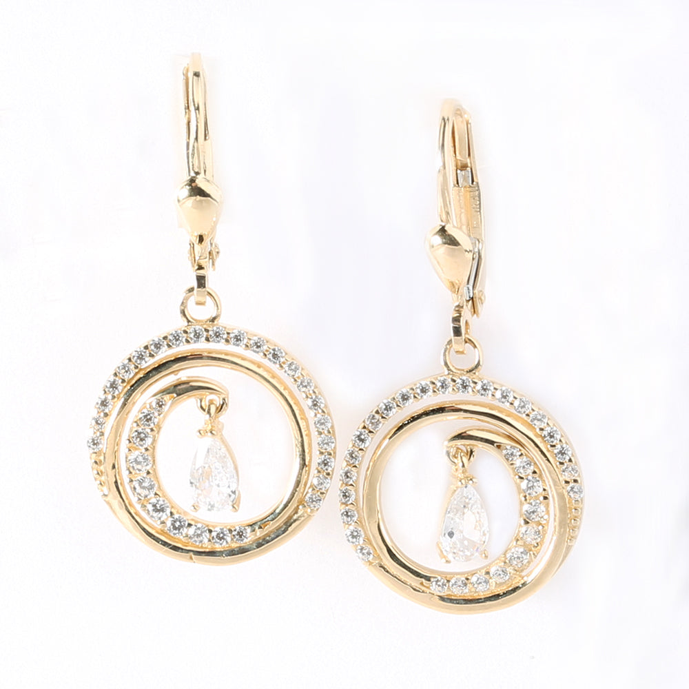 14K Solid Yellow Gold Wave Leverback Earring w/CZ