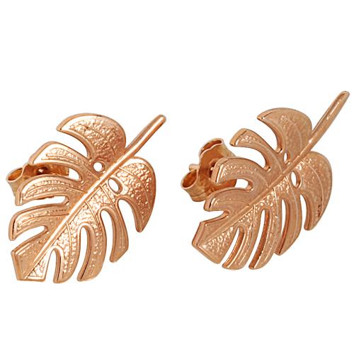 Solid 14K Pink Gold Monstera Leaf Earrings