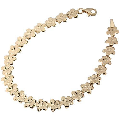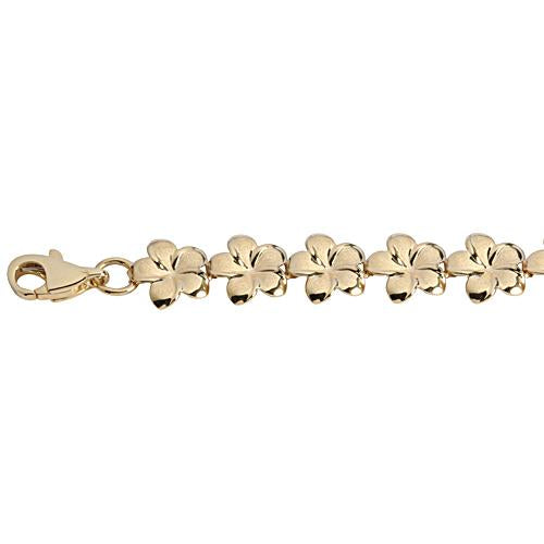 Solid 14K Yellow Gold Plumeria Link Bracelet Sandblast Polish Edge