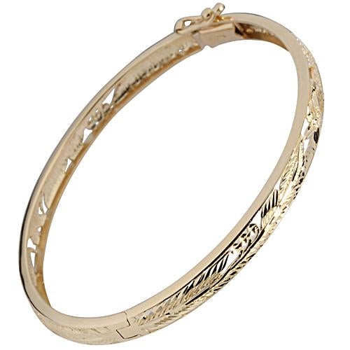 14K Yellow Gold See Through Maile Leaf Bangle 5mm