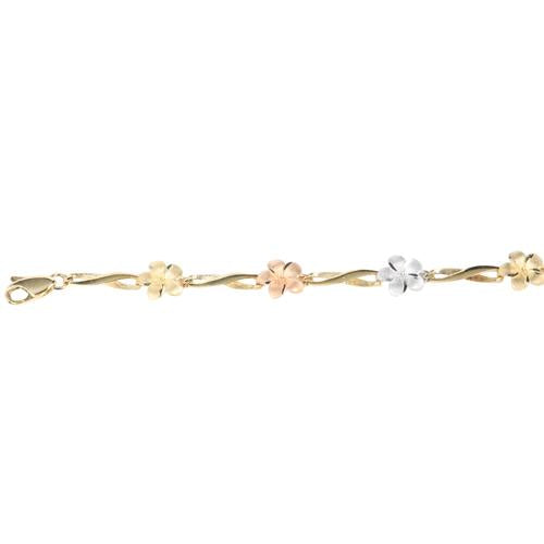 14K Tri-Color Gold Plumeria Twist Bar Bracelet Sandblast Polish Edge
