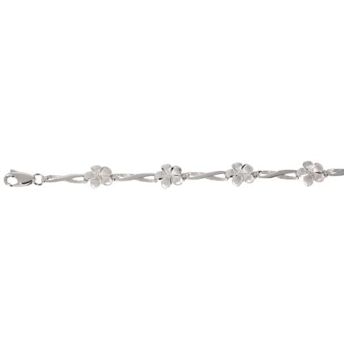 14K White Gold Plumeria Twist Bar Bracelet Sandblast Polish Edge