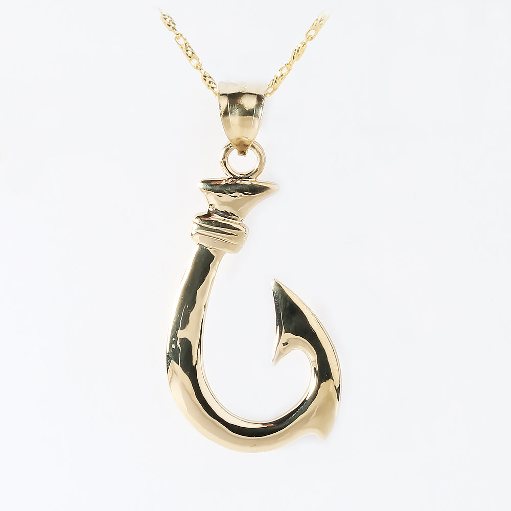 14K Solid Yellow Gold High Polish Fish Hook Pendant (Chain Sold Separately)