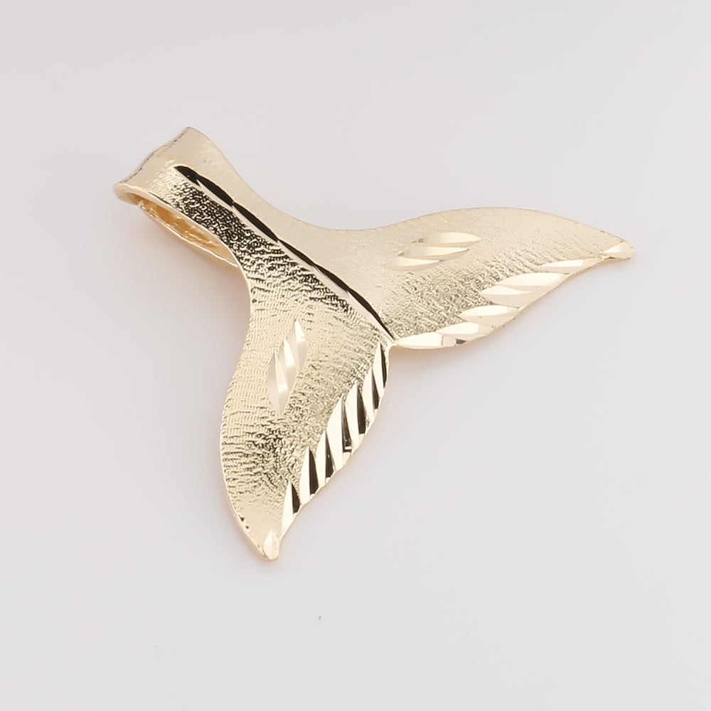 14K Solid Yellow Gold Whale Tail Pendant(Chain Sold Separately)