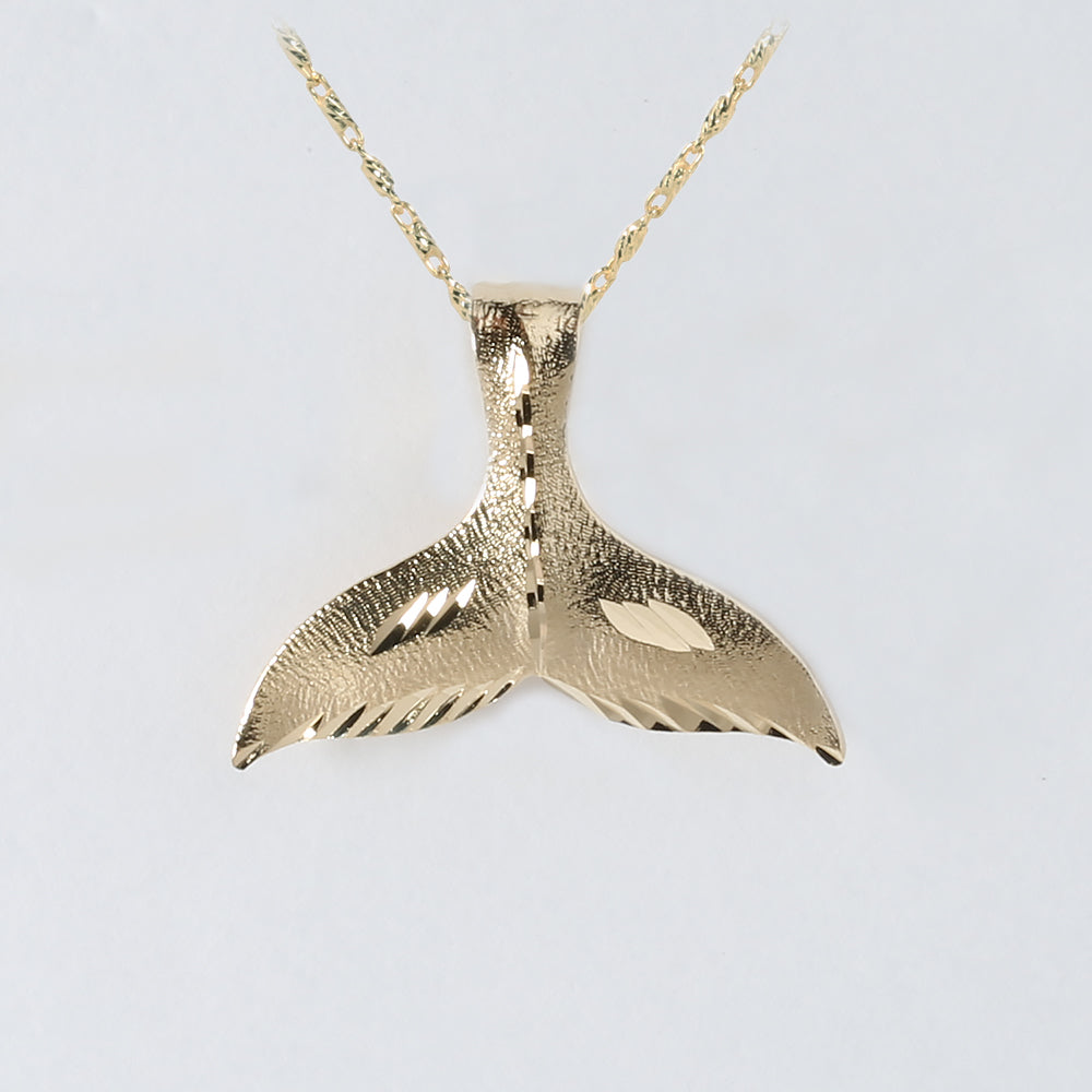 14K Solid Yellow Gold Whale Tail Pendant (Chain Sold Separately)