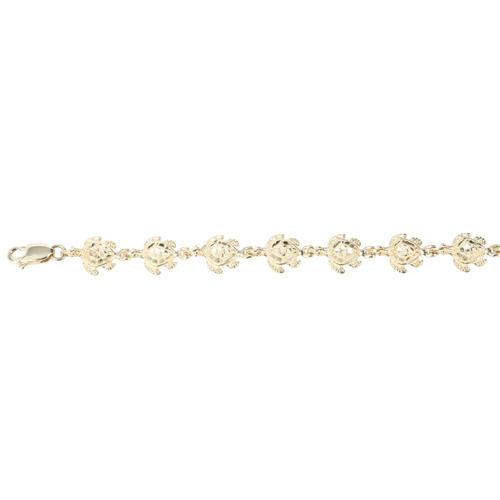 Solid 14K Yellow Gold Turtle Bracelet Diamond Cut Finish