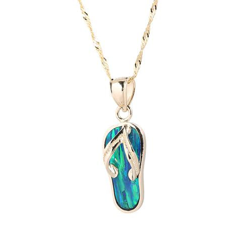 Solid 14K Yellow Gold Opal Inlaid Slipper (Flip Flop) Pendant (Chain Sold Separately)