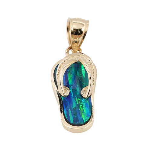 14K Yellow Gold Opal Inlaid Slipper (Flip Flop) Pendant (Chain Sold Separately)