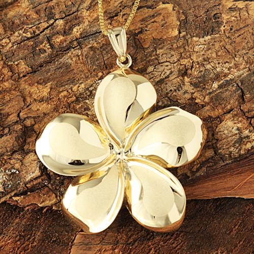 14K Yellow Gold Plumeria Pendant (S/M/L/XL/XXL) (Chain Sold Separately)