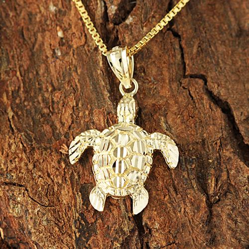 14K Yellow Gold Honu (Hawaiian Turtle) Pendant (S/M) (Chain sold Separately)