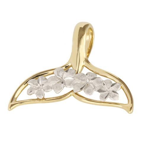 14K Two-Tone Gold (YG/WG) Whale Tail Plumeria Pendant (Chain Sold Separately)
