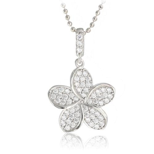Solid 14K White Gold Plumeria Paved CZ Pendant (Chain Sold Separately)