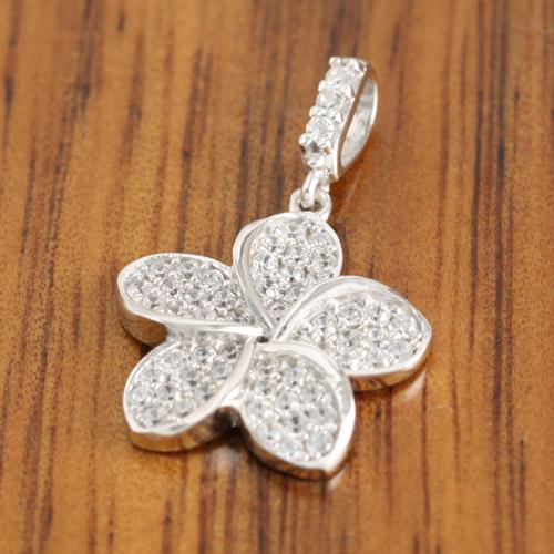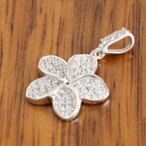 14K White Gold Plumeria Paved CZ Pendant 13mm (Chain Sold Separately)