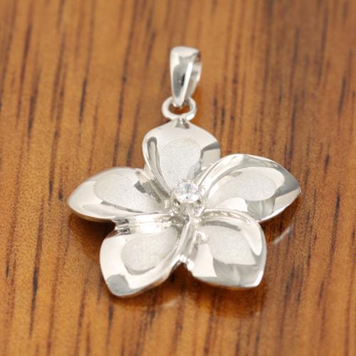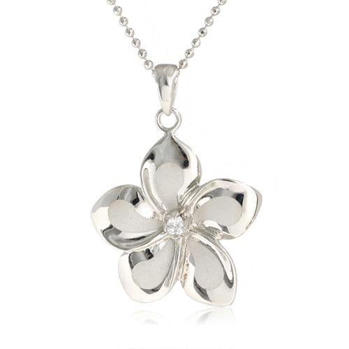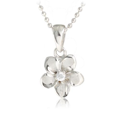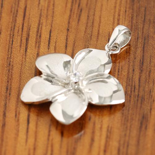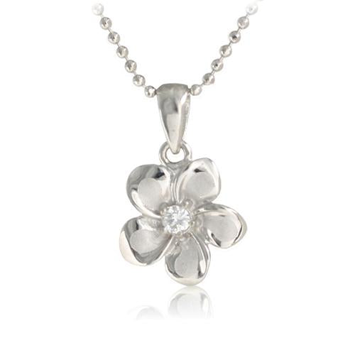 14K White Gold Plumeria Pendant with CZ (XS/S/M/L) (Chain Sold Separately)