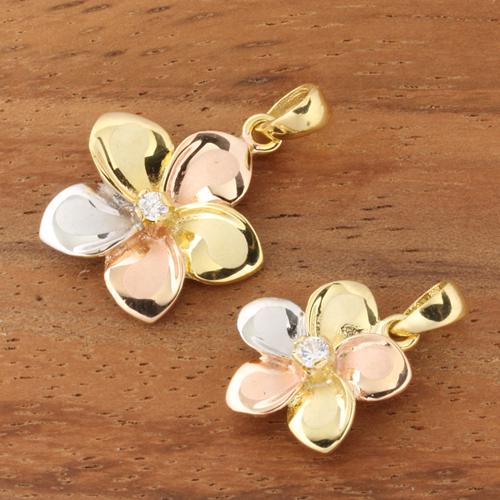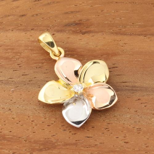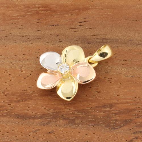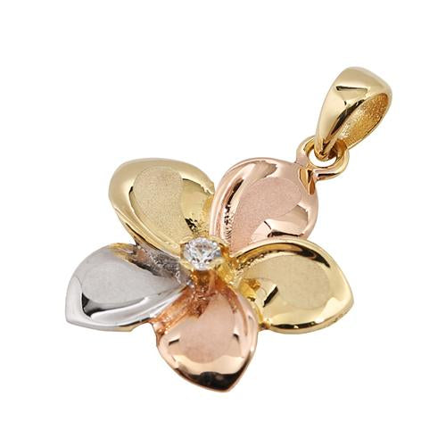 14K Tri-Color Gold Plumeria Pendant with CZ (S/M) (Chain Sold Separately)