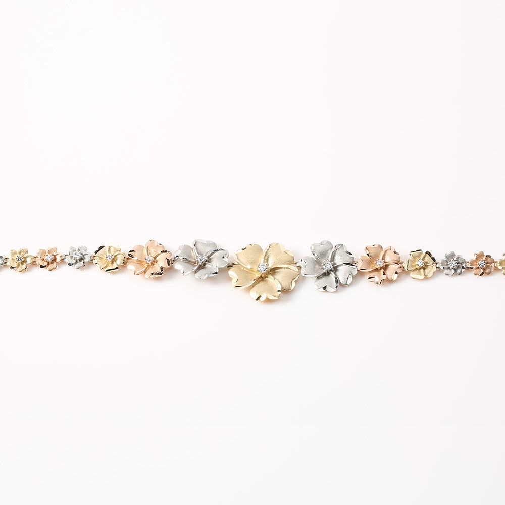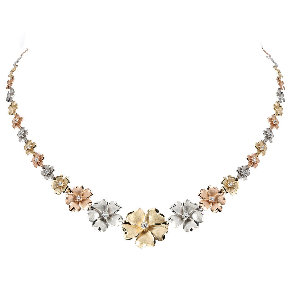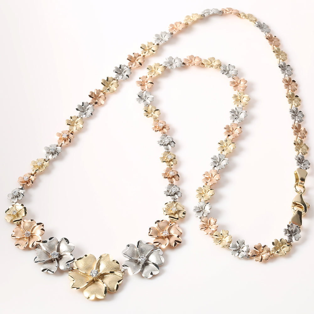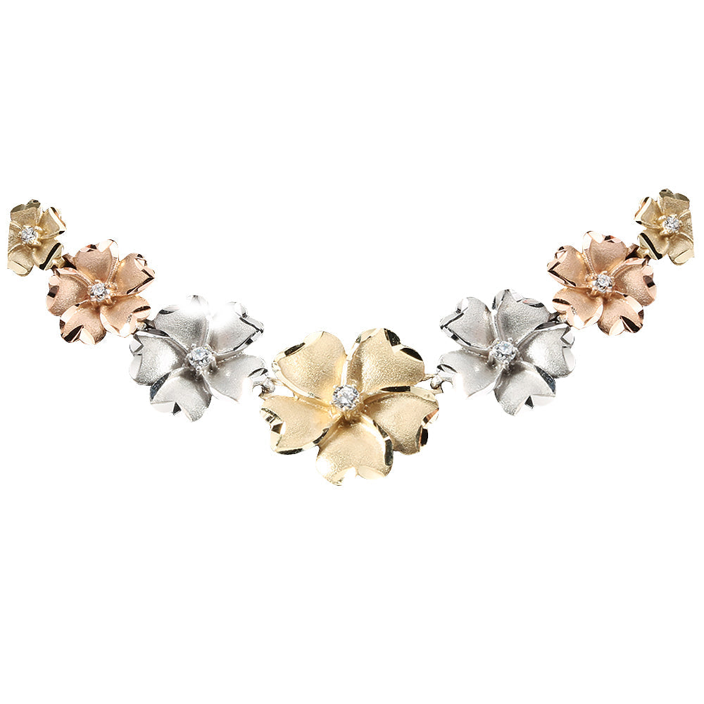 14K Solid Gold Tri-Color Hibiscus Necklace
