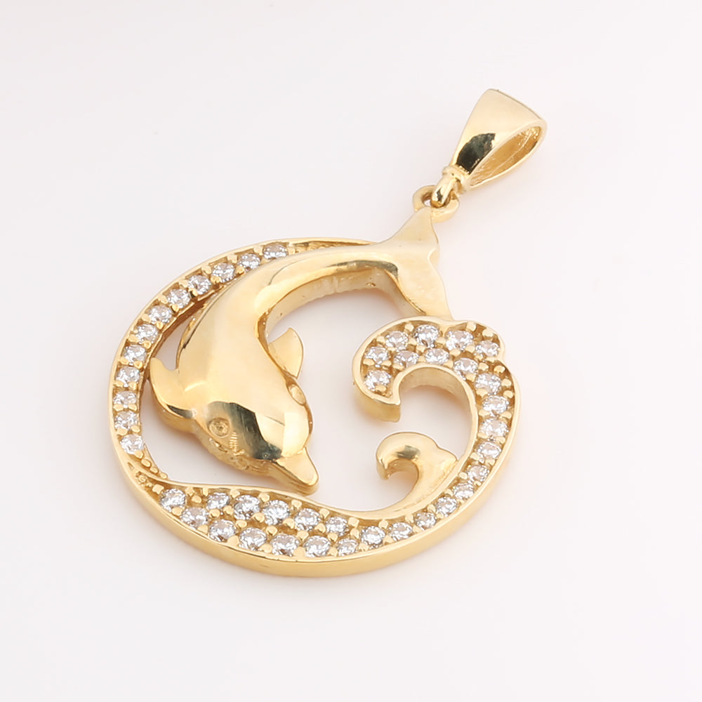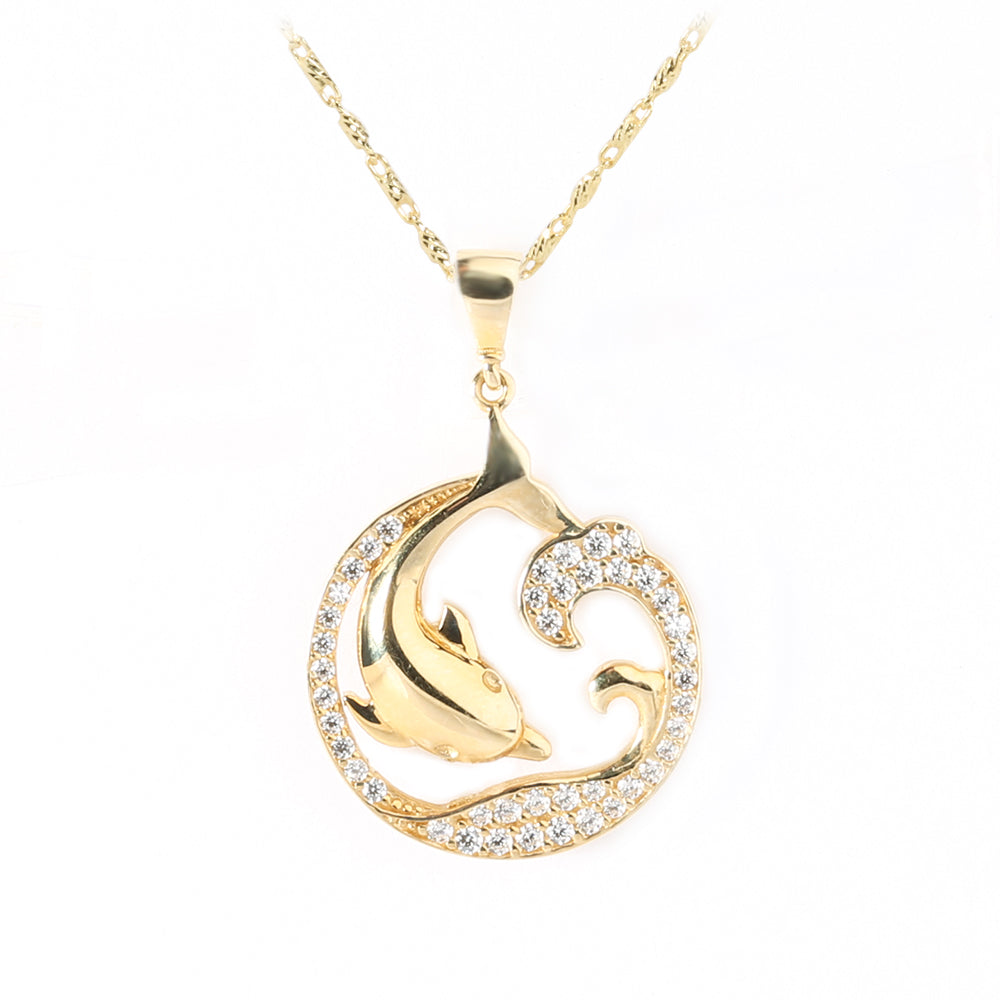 14K SolidYellow Gold Island Pendant Diving Dolphin, Wave(Chain Sold Separately)