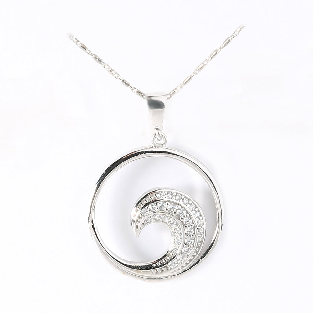 14K Solid White Gold Wave Pendant w/CZ(Chain Sold Separately)