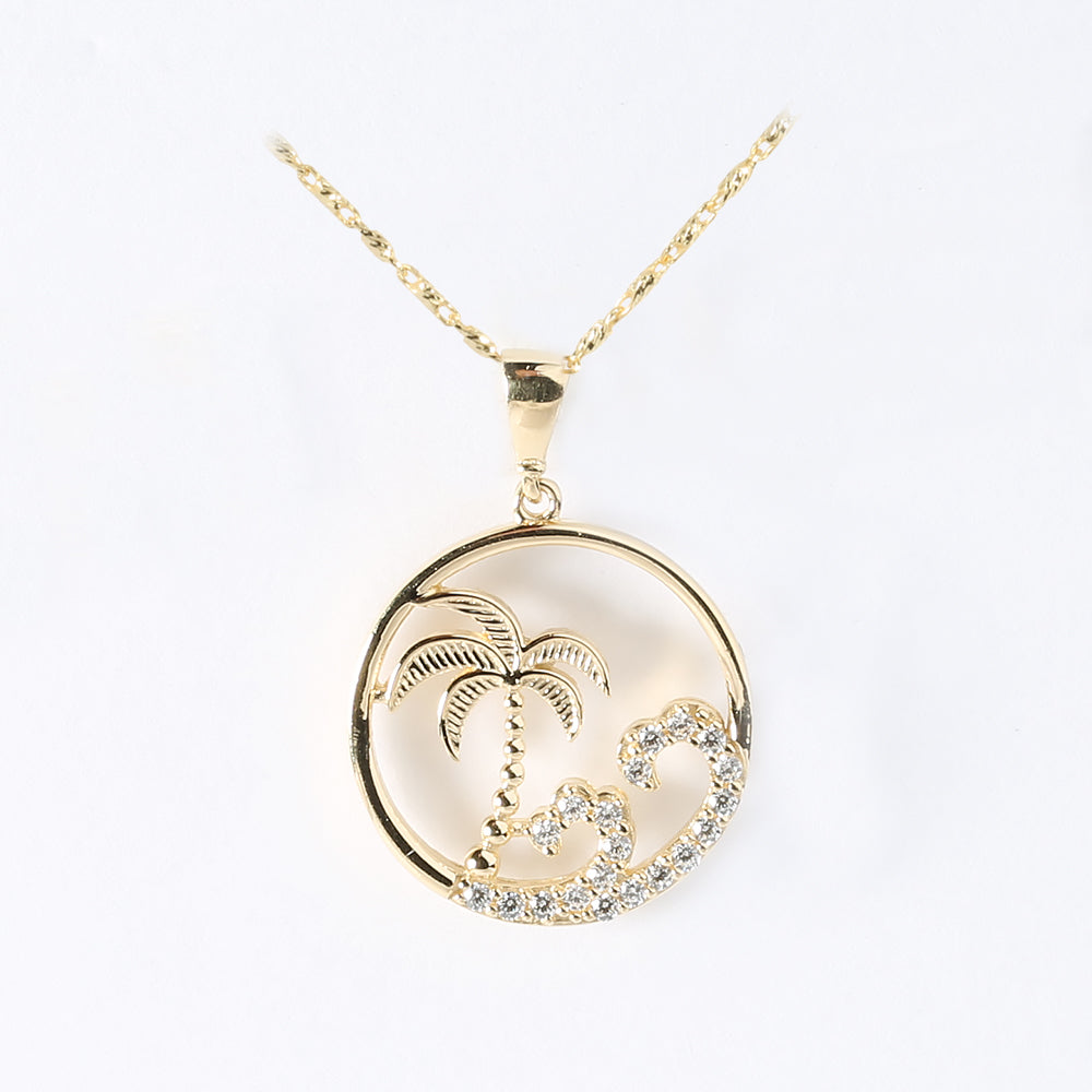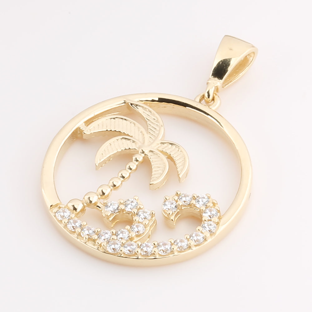 14K Solid Yellow Gold Island Pendant Wave/CZ(Chain Sold Separately)