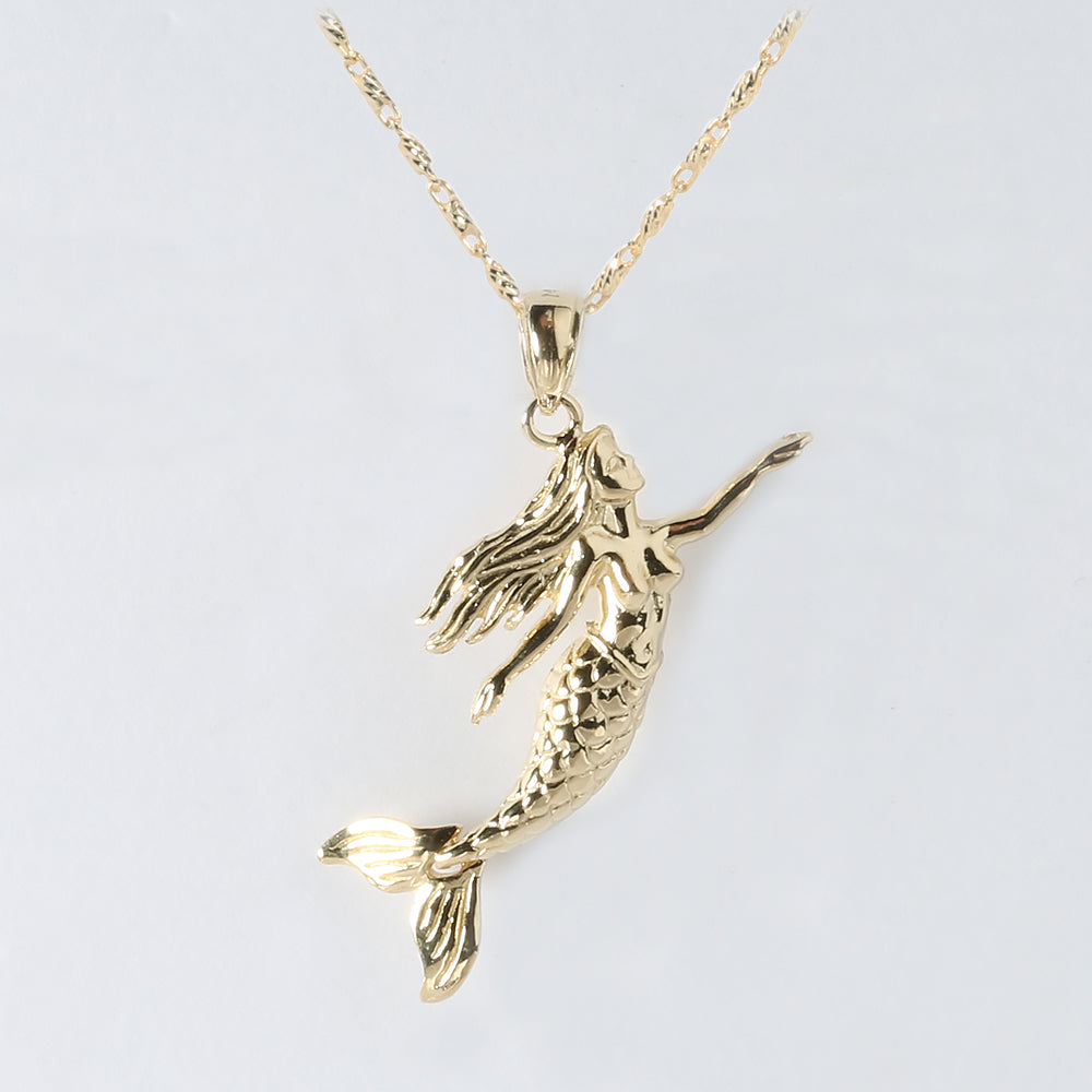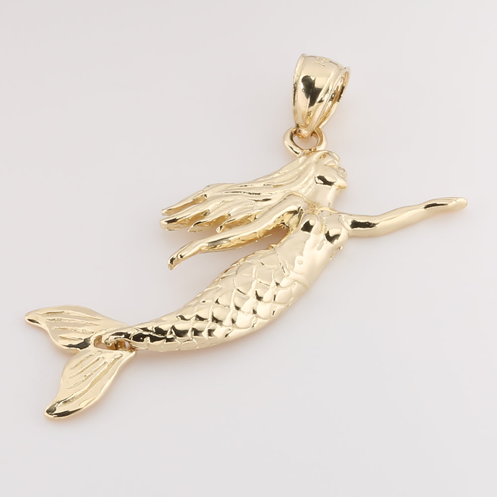 14K Solid Yellow Gold Mermaid Pendant (Chain Sold Separately)