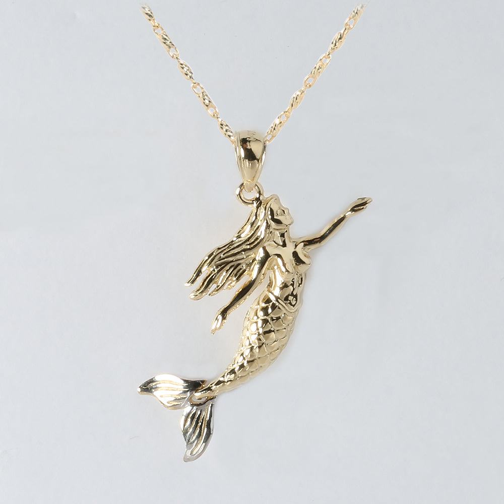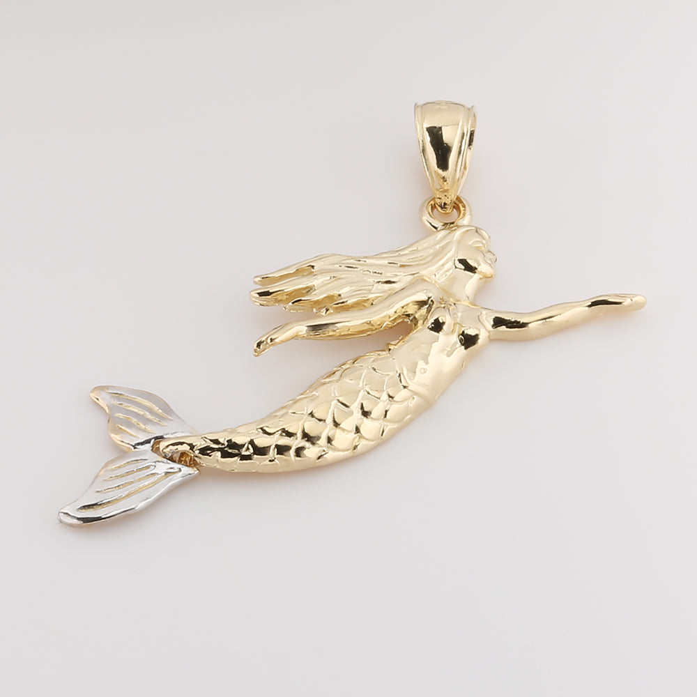 14K Solid Yellow Gold Mermaid Pendant Two Tone (Chain Sold Separately)