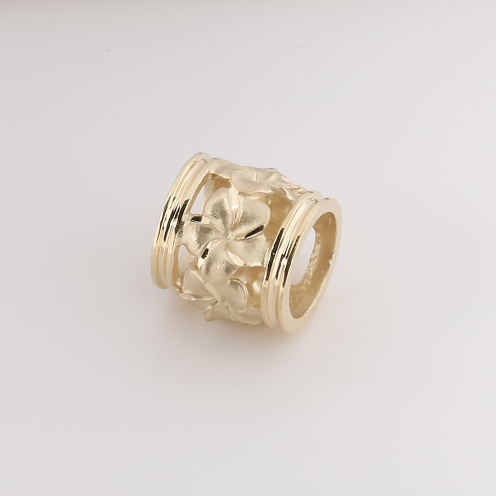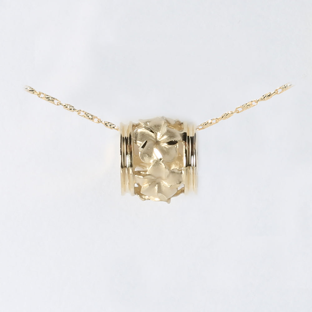 14K Solid Yellow Gold Plumeria Barrel Pendant(Chain Sold Separately)