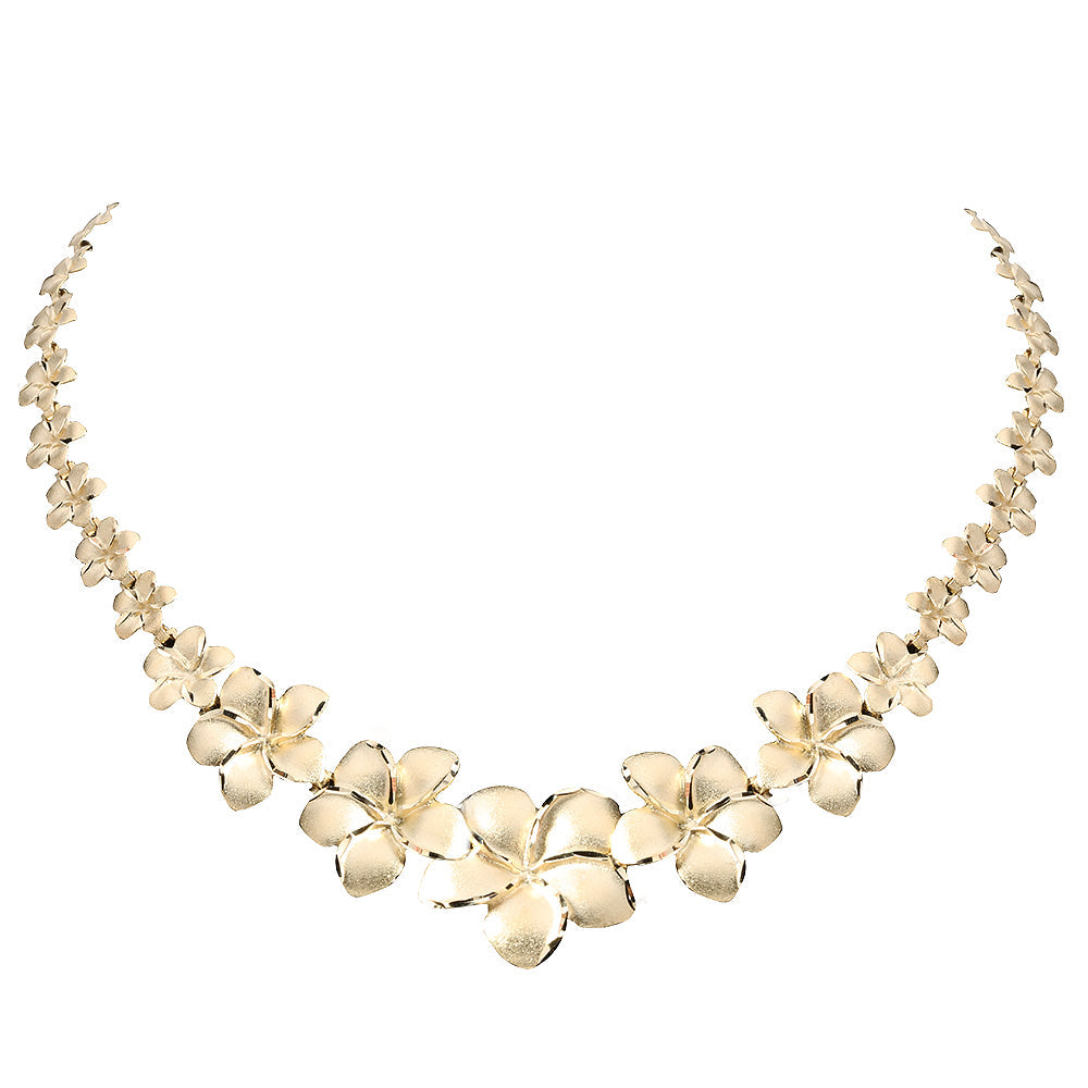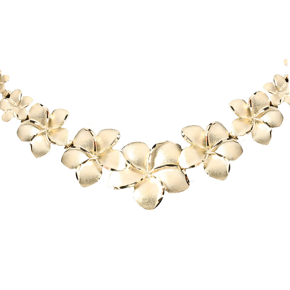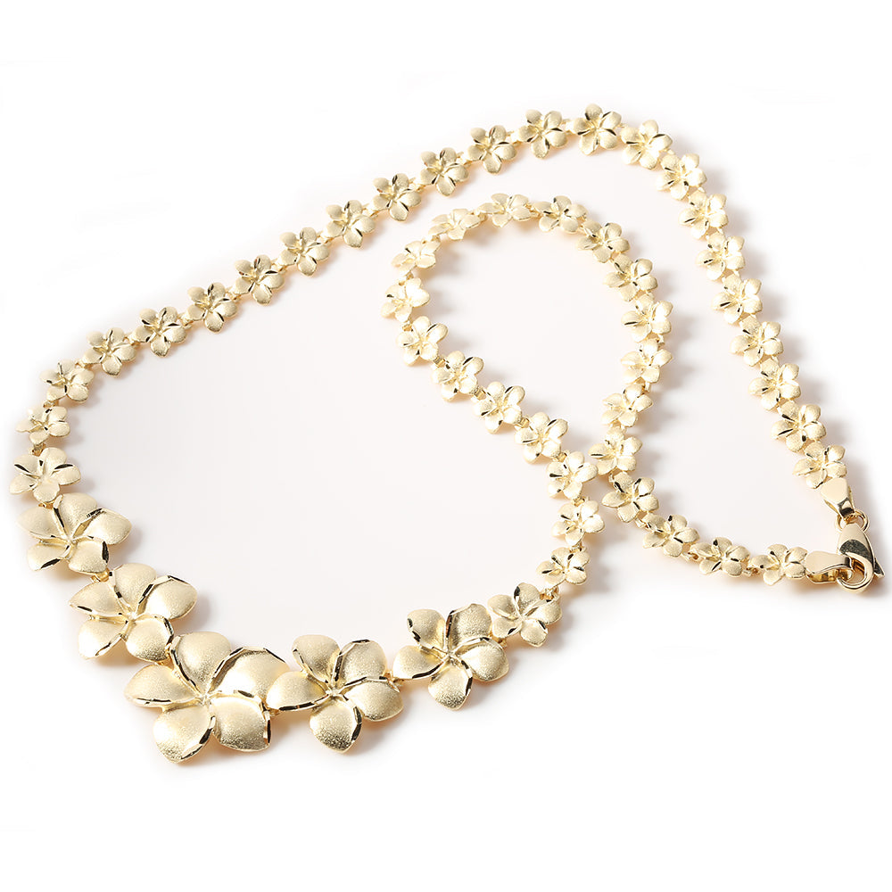14K Solid Yellow Gold Plumeria Necklace