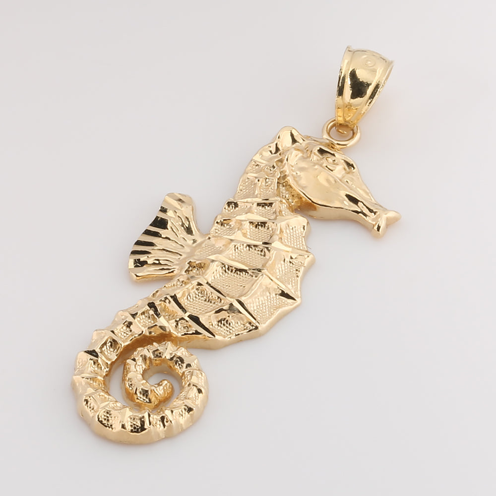 14K Solid Yellow Gold Seahorse Pendant(L) (Chain Sold Separately)