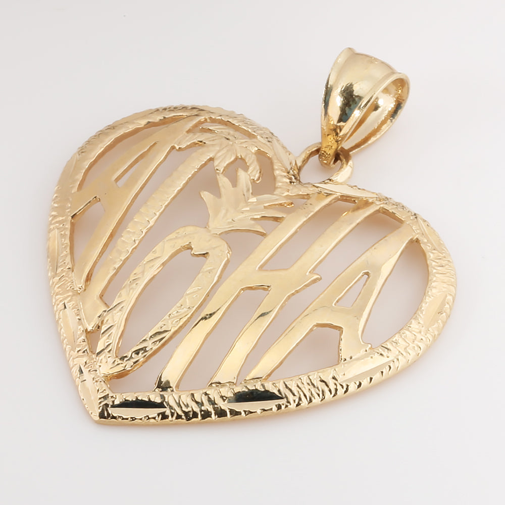14K Solid Yellow Gold See Through Heart Pendant(L) (Chain Sold Separately)