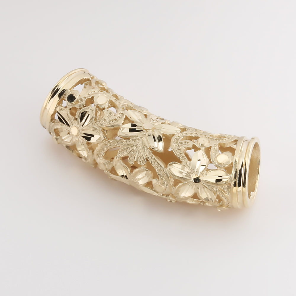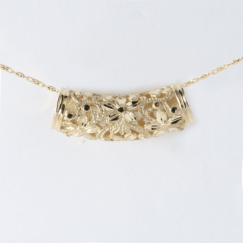 14K Solid Yellow Gold See Through Tube Pendant(L)(Chain Sold Separately)