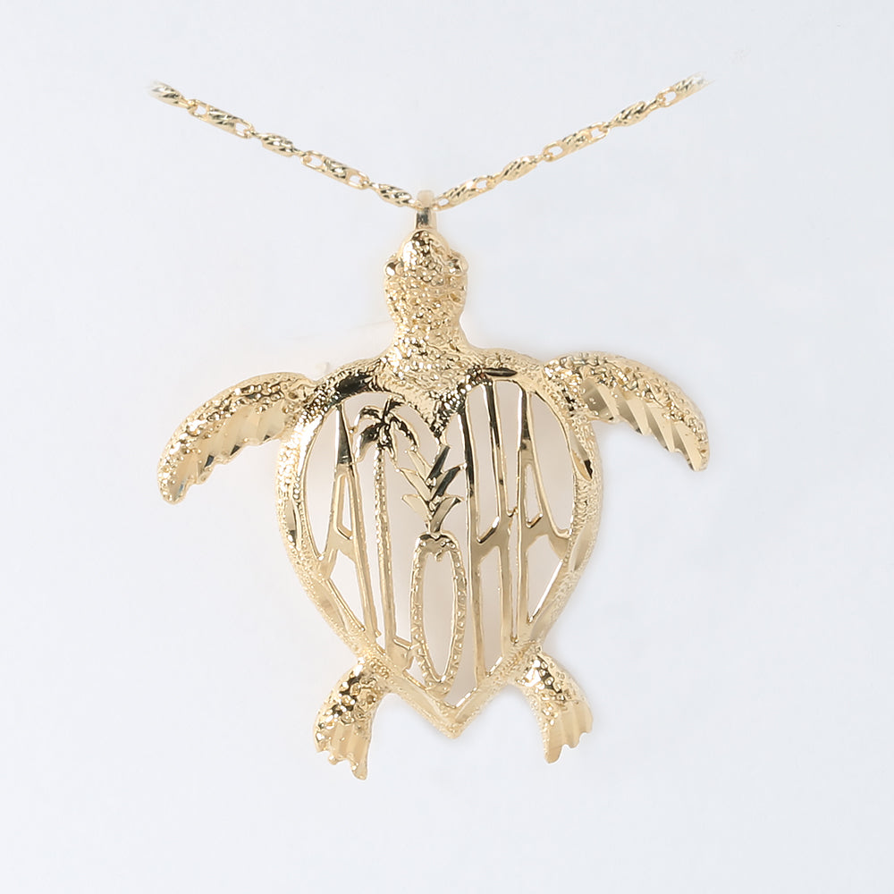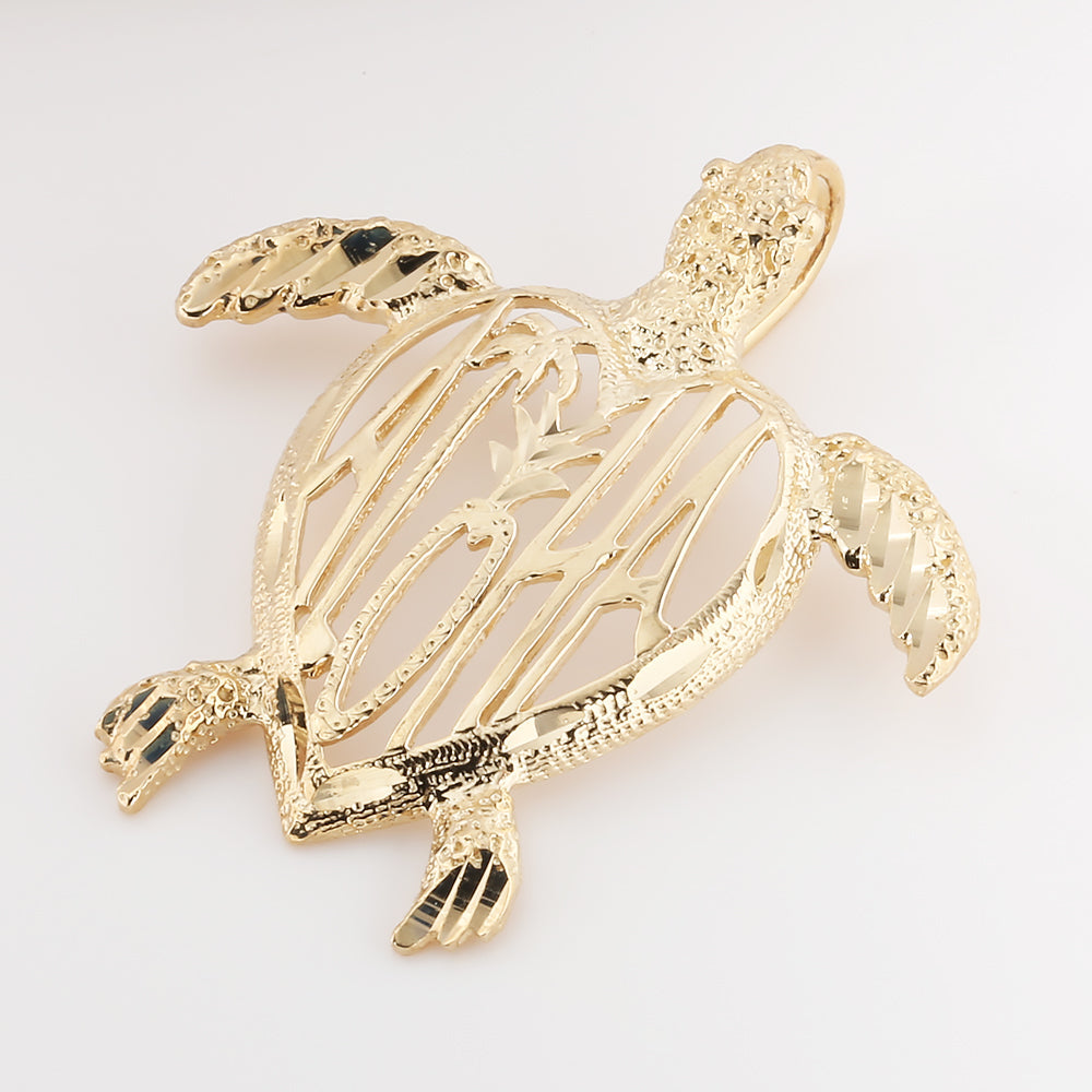 14K Solid Yellow Gold See Through Turtle Pendant(L) (Chain Sold Separately)