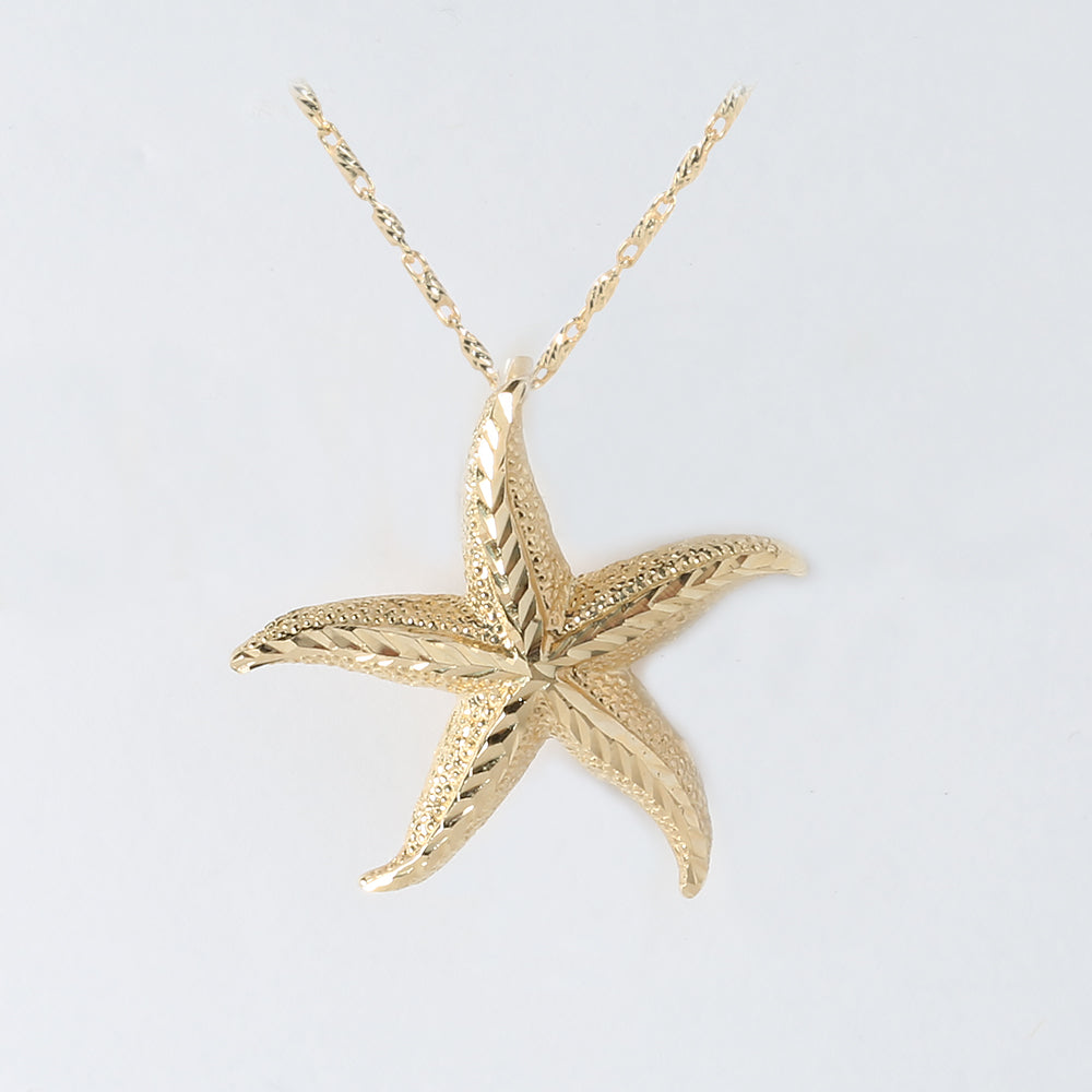 14K Solid Yellow Gold Starfish Pendant (Chain Sold Separately)