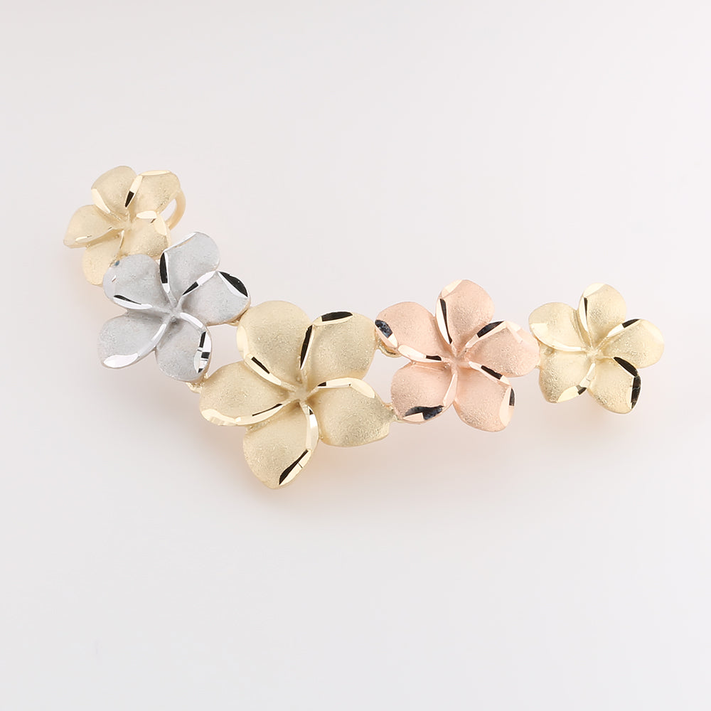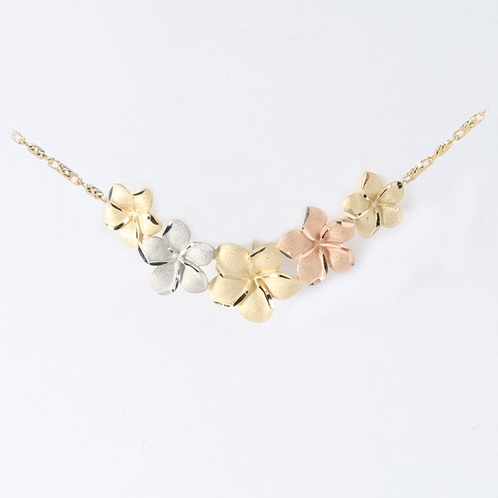 14K Solid Yellow Gold Tri-Color Plumeria Slider Pendant(Chain Sold Separately)
