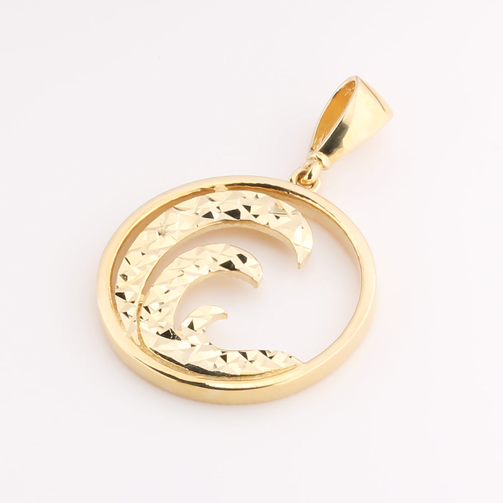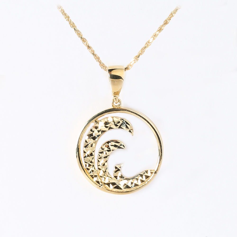 14K Solid Yellow Gold Wave Pendant Diamond Cut(S) (Chain Sold Separately)