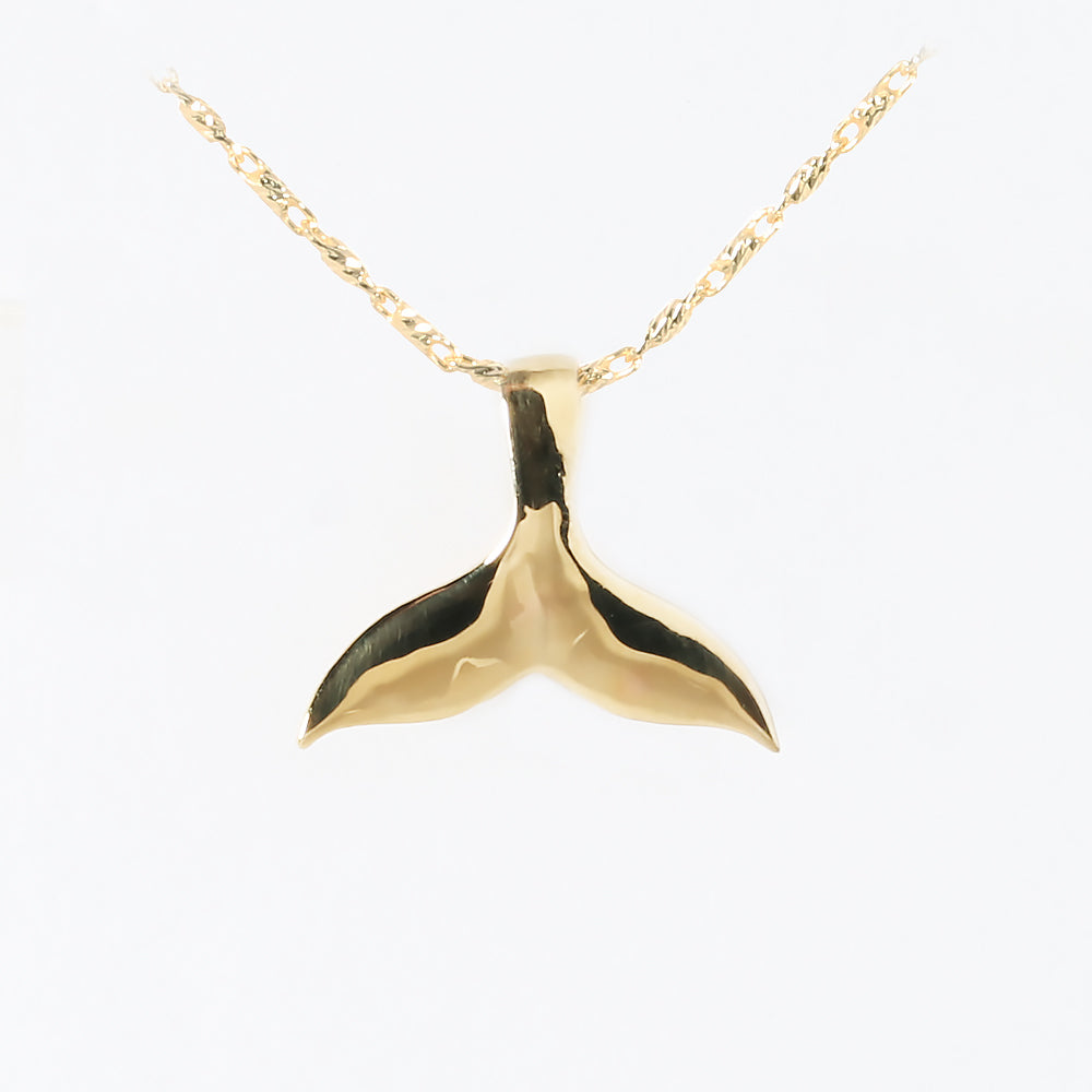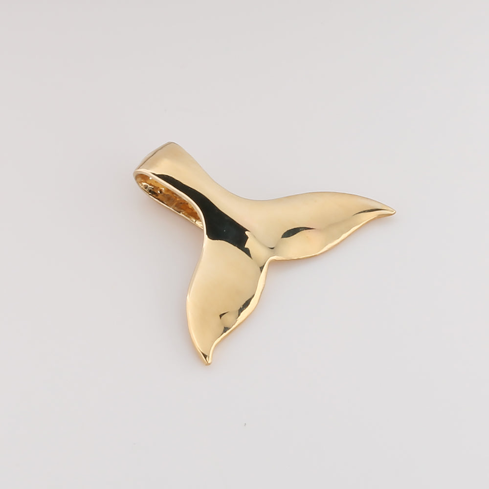14K Solid Yellow Gold Whale Tail Pendant (Chain Sold Separately)