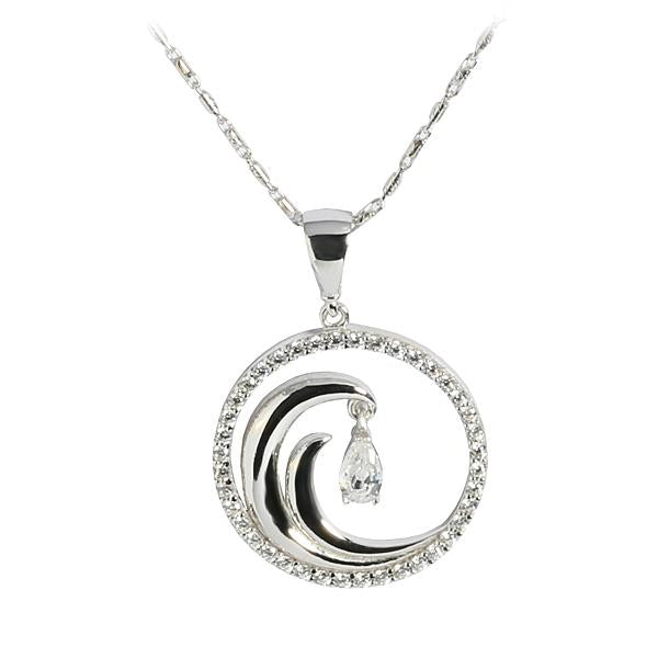 Solid 14K White Gold Wave in Paved CZ inlaid Circle Pendant (Chain Sold Separately)