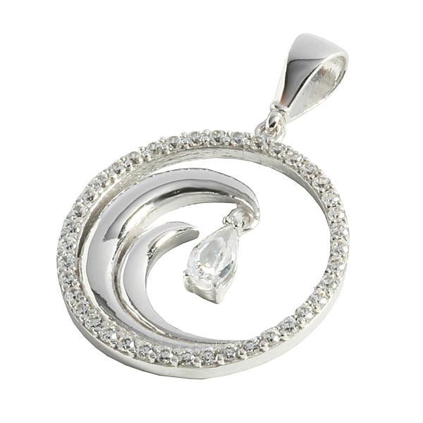 14K White Gold Wave in Paved CZ inlaid Circle Pendant (Chain Sold Separately)
