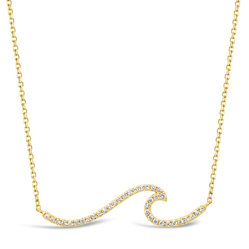 14K Yellow Gold Diamond Wave Necklace D0.18CT Large