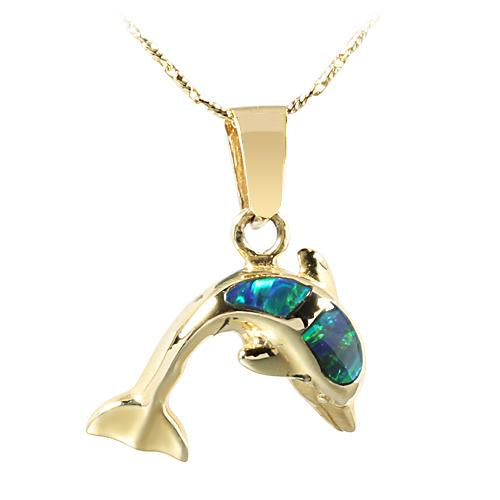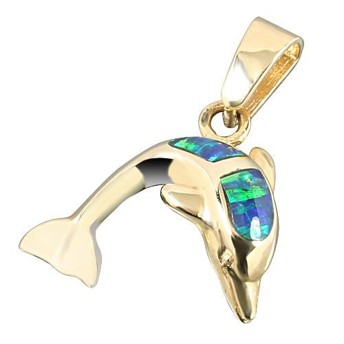 14K Yellow Gold Opal Inlaid Dolphin Pendant (Chain Sold Separately)