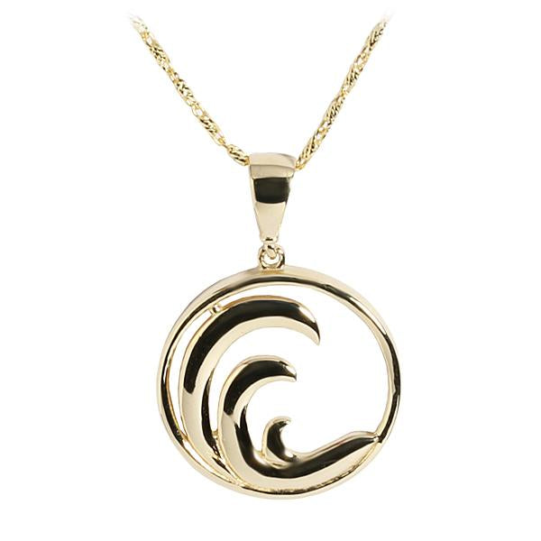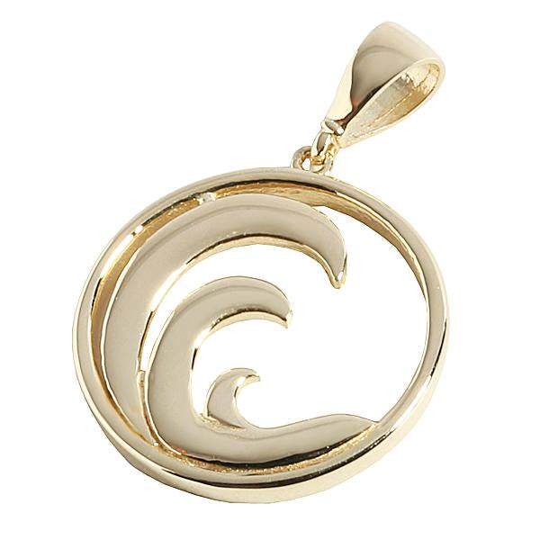 14K Yellow Gold Wave in Circle Pendant (Chain Sold Separately)