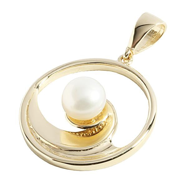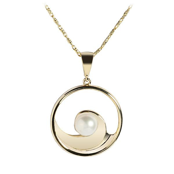 14K Yellow Gold Wave In Circle with Pearl Pendant (Chain Sold Separately)
