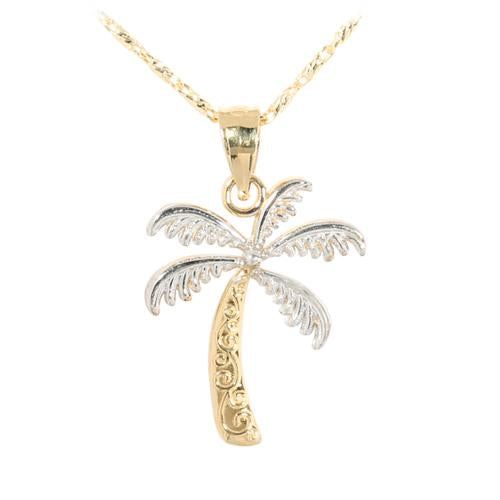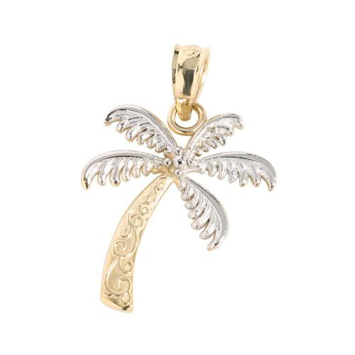 14K Two-Tone Gold (YG/WG) Palm Tree Pendant (S) (Chain Sold Separately)