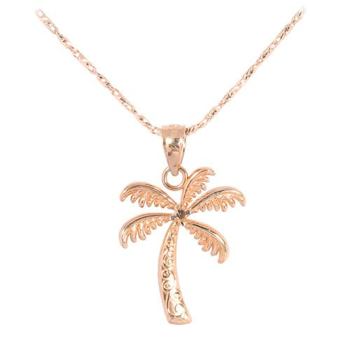 Solid 14K Pink Gold Palm Tree Pendant (S) (Chain Sold Separately)
