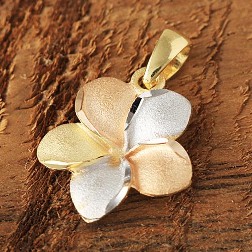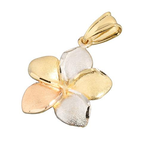 Solid 14K Tri-Color Gold Plumeria Pendant Sandblast Finish (Chain Sold Separately)
