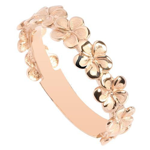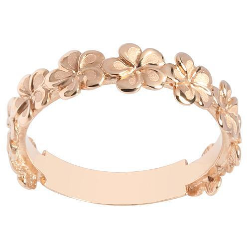 14K Pink Gold Plumeria Lei Ring Sandblast Polish Edge 5mm